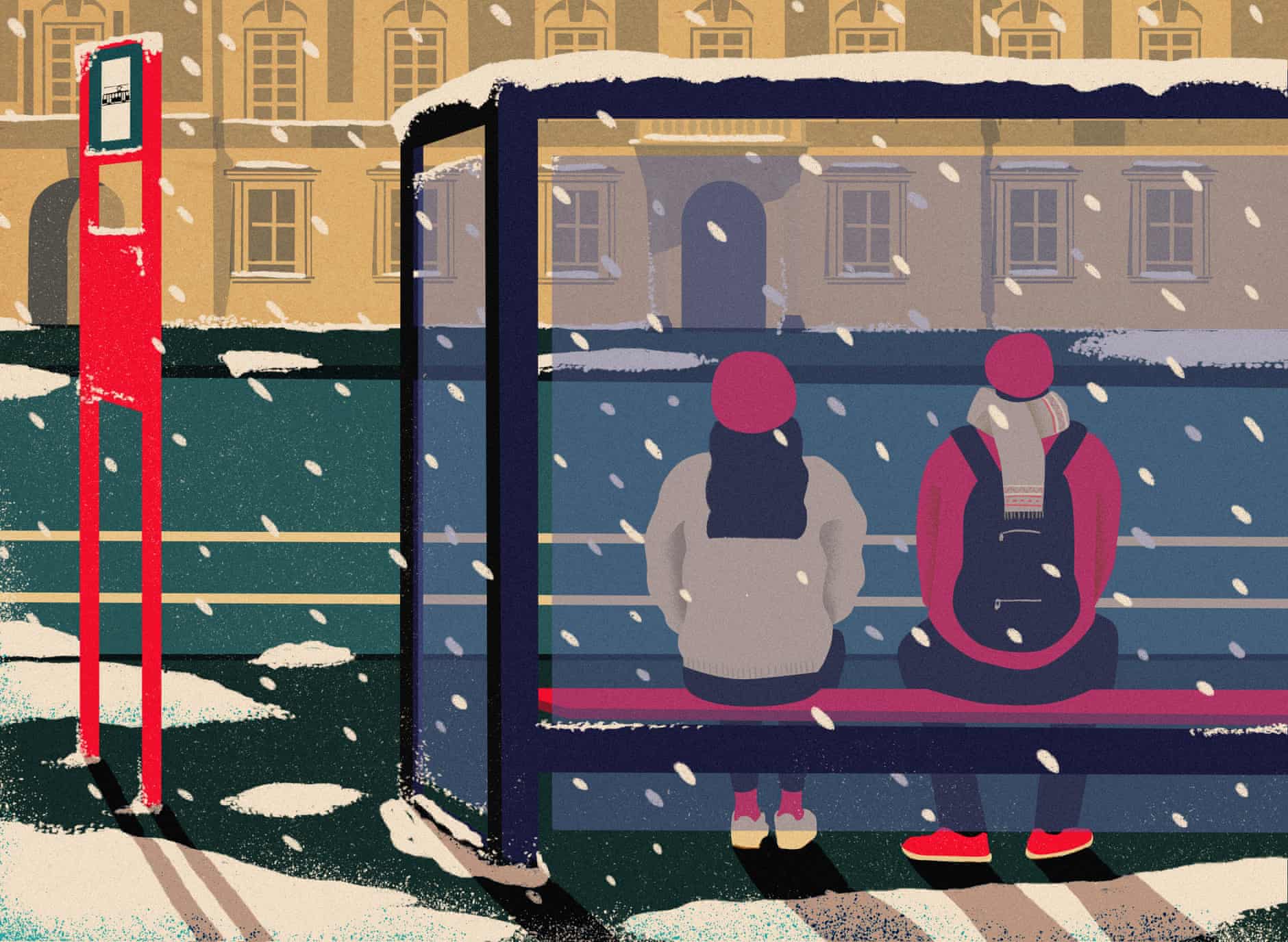 The accompanying illustration from Helen Oyeyemi's recently published short story Vicentka vs Garbage Water. The story describes a chance encounter between two individuals at a tram stop on a cold winter night in Prague.